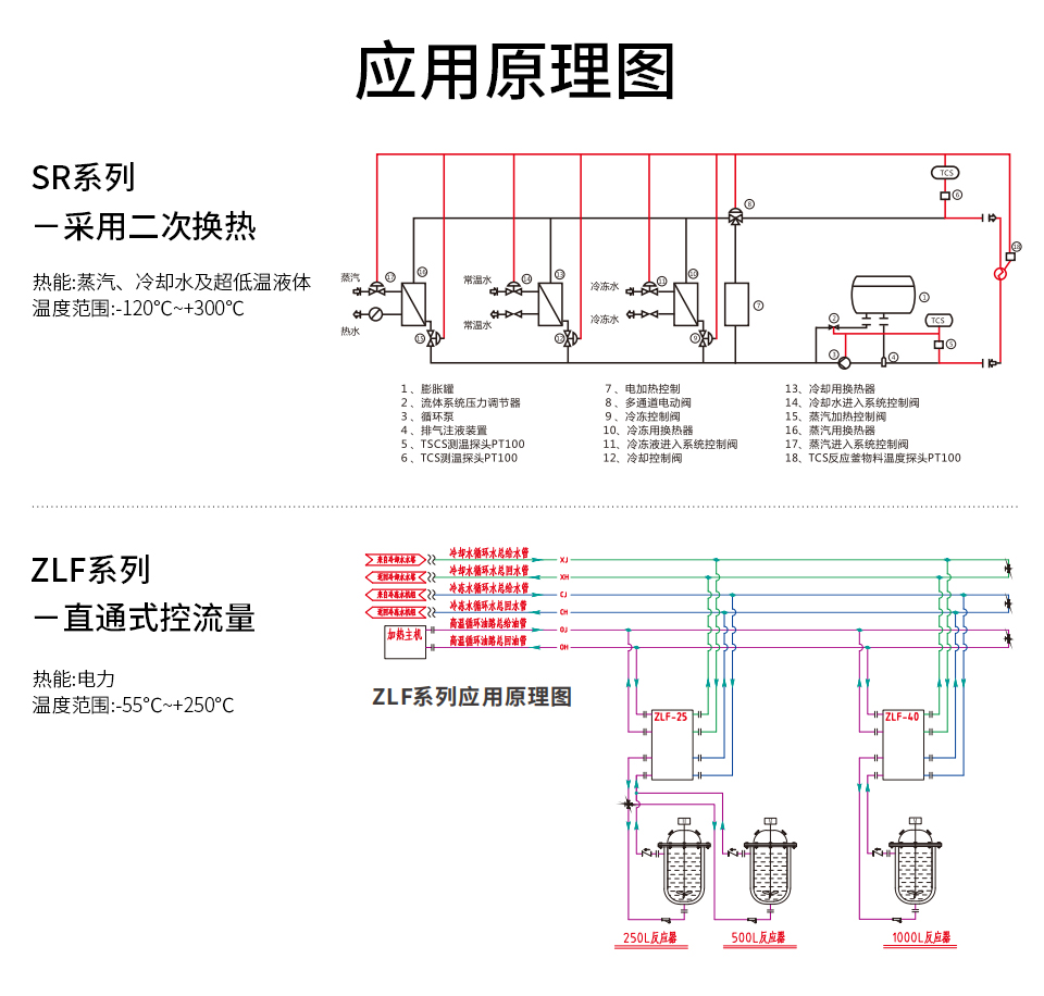 ZLF-N 采用主冷源/或主熱源通過比例調(diào)節(jié)系統(tǒng)流量,控制進(jìn)入反應(yīng)釜夾套的熱量,同時還有一組用于加熱或冷卻的換熱器控制升溫或降溫